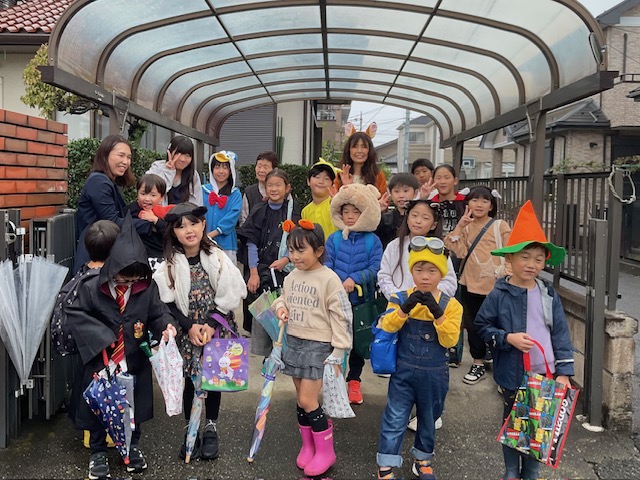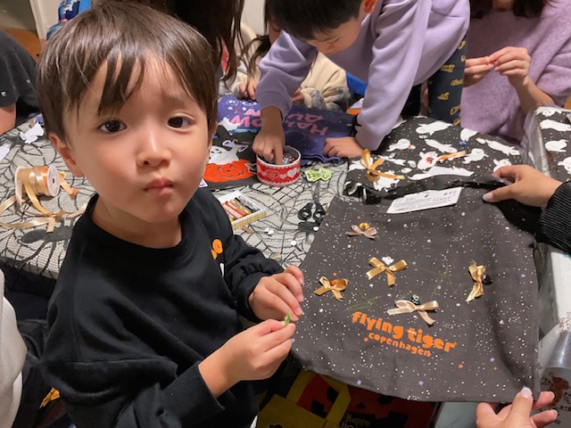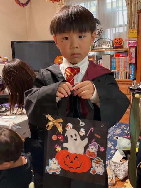 今年もハロウインレッスン開催しました!ご加くださった皆様ありがとうございました!ハロウインレッスン数か月前からクラフトは何をしようか?とハロウインの事がいつも頭にありまして・・・今回もトリックオアトリートのバッグをデコレーションすることにしました。アイスグレイキングの後、絵本を読んでから、雨が怪しかったので早めにトリックオアトリートに私の実家へGo!おこずかいをもらってみんな笑顔