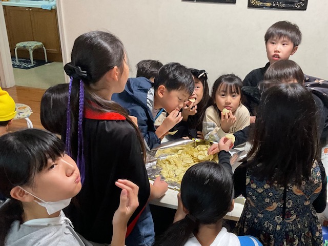 最後にみんなで大容量のポテトチップス2袋を爆食い~サマーレッスンでも大量にポテチが売れたので、今回は2袋20名で平らげました!